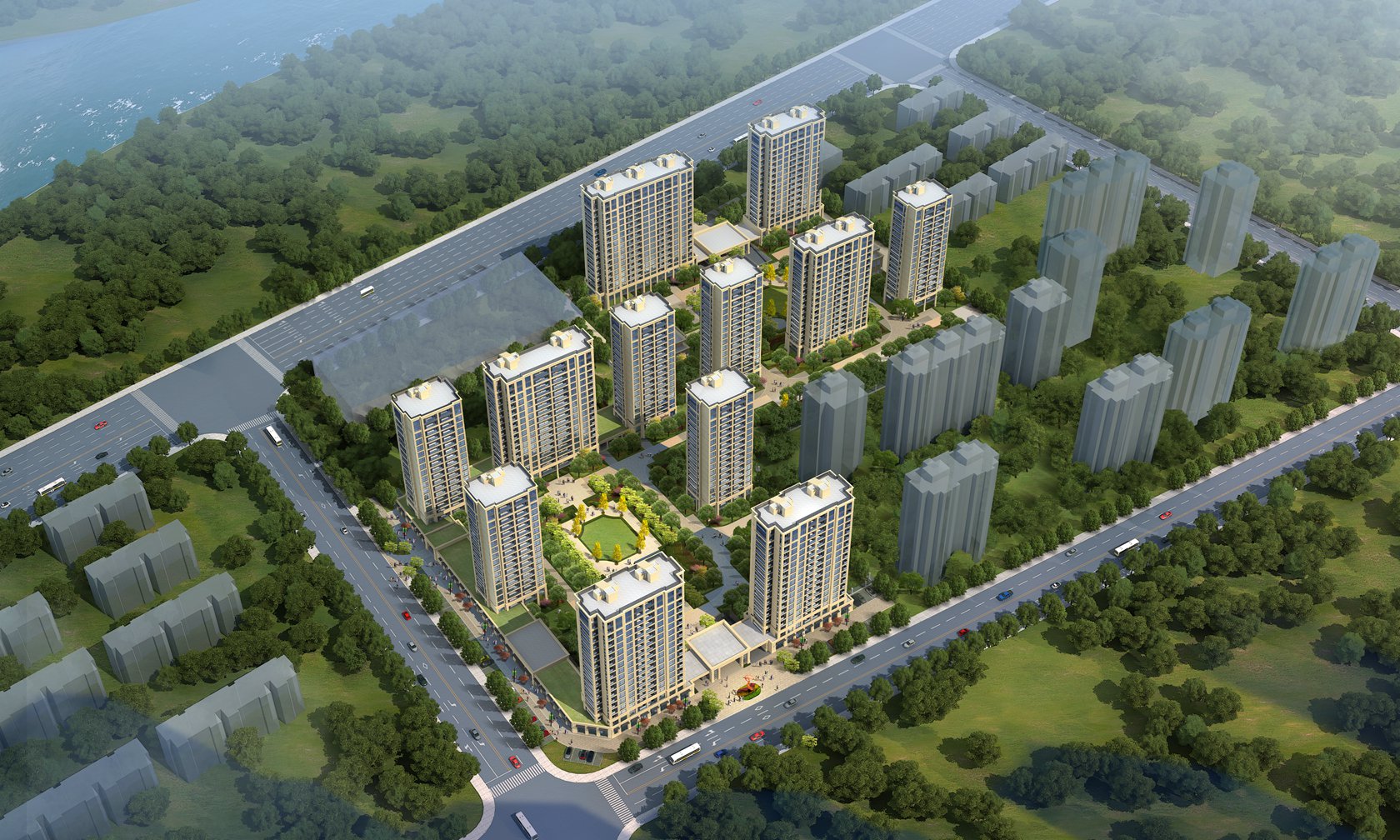 5、人車分流,保證中心組團(tuán)環(huán)境的完整、安寧,創(chuàng)造和諧、融洽的鄰里生活與文化,營造良好的居住環(huán)境;