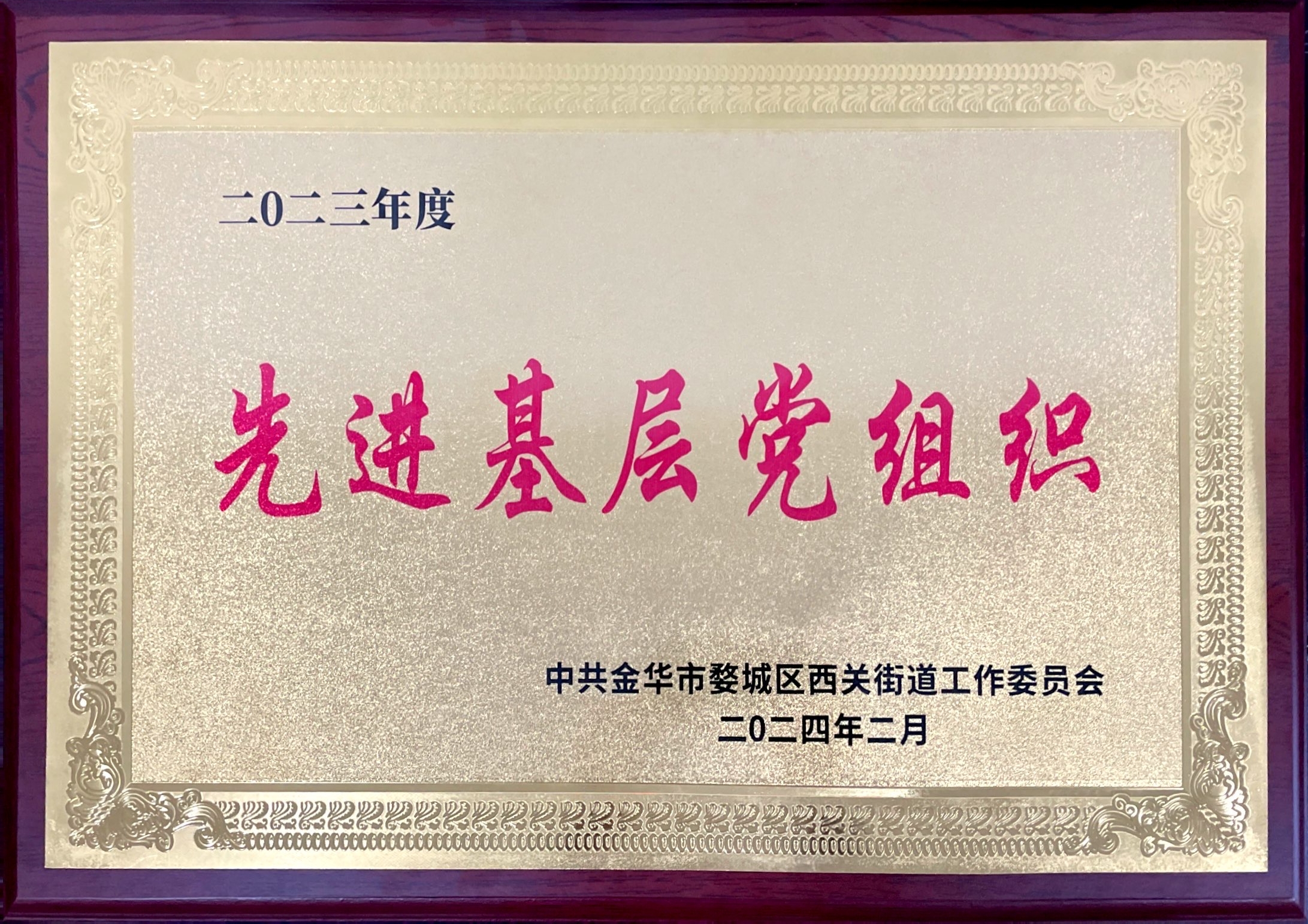 中共金華市婺城區(qū)西關(guān)街道工作委員會(huì)授予的先進(jìn)基層黨組織榮譽(yù)。